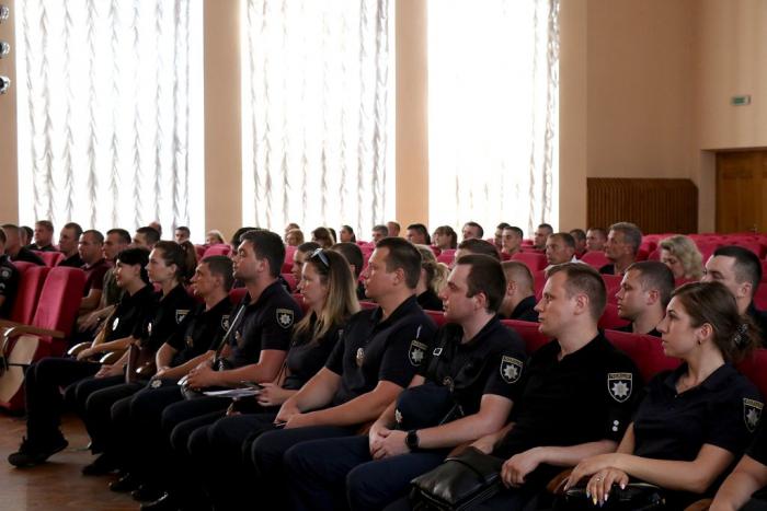 Зі слухачами курсів підвищення кваліфікації зустрілися ректор університету полковник поліції Дмитро Швець, перший проректор підполковник поліції Сергій Бортник та проректор Михайло Бурдін.