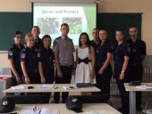 Викладачі кафедри іноземних мов доцент Валентина Почуєва та викладач Ганна Бабак провели бінарне заняття в навчальній групі Ф1-17-203 за участі старшого лейтенанта поліції Владислава Модики. Певний час він працював інспектором сектора реагування патрульної поліції у місті Красноград, тож поділився власним досвідом та окреслив завдання патрульної поліції: запобігання злочинності, налагодження партнерства поліції та громади, розслідування злочинів, забезпечення дотримання правил дорожнього руху, надання першої медичної допомоги, транспортування ув’язнених тощо. Владислав зазначив, що патрульні поліцейські часто першими приходить на допомогу у надзвичайних ситуаціях та є найбільш помітними представниками поліції на вулицях.