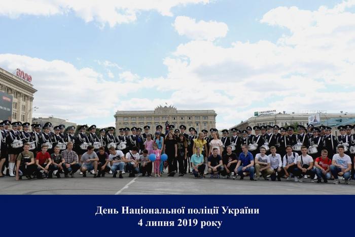 Представники Харківського національного університету внутрішніх справ разом із ГУНП в Харківській області провели святкові заходи з нагоди четвертої річниці створення Національної поліції України. Виступи курсантських підрозділів барабанщиць, карабінерів та духового оркестру на майдані Свободи, як завжди, викликали у присутніх позитивні емоції та додали усім гарного настрою. На майданчику біля Харківського академічного театру опери та балету ім. Лисенка з музичними композиціями виступив духовий оркестр навчального закладу та колектив художньої самодіяльності.