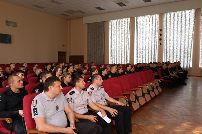 Із слухачами провели зустріч перший проректор університету підполковник поліції Сергій Бортник, проректор університету Михайло Бурдін та директор інституту післядипломної освіти Євгеній Жеребцов. На зустрічі були розглянуті організаційні питання.
