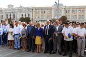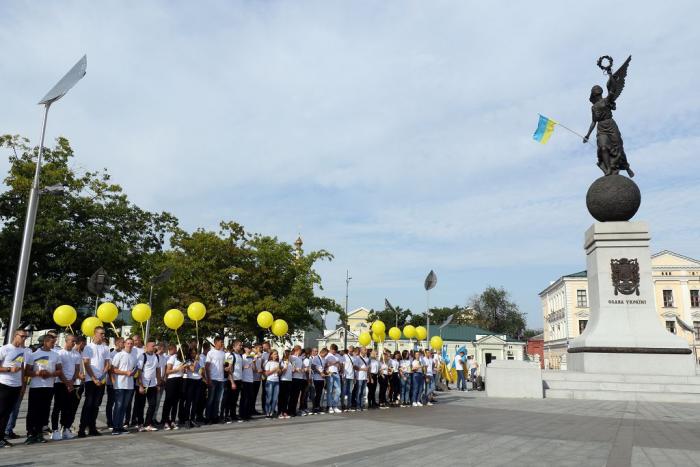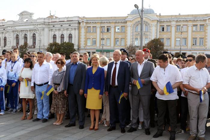 Представники Харківського національного університету внутрішніх справ – працівники, першокурсники, які проходять табірний збір, стали учасниками флешмобу, який відбувся на площі Конституції. 23 серпня на Харківщині відзначають подвійне свято – День Державного Прапора України та День міста Харкова. В акції взяли участь голова Харківської обласної державної адміністрації Юлія Світлична, жителі міста та районів області, діти, учасники й ветерани АТО та ООС, волонтери. Під час флешмобу, присвяченого державному символу, на площі Конституції склали з прапорів надпис «Харківщина вітає з Днем Державного Прапора України», а також виступили відомі харківські спортсмени. Після завершення заходу першокурсники університету поспілкувалися з головою Харківської обласної державної адміністрації Юлією Світличною.
