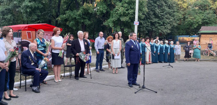 Представники Харківського національного університету внутрішніх справ на чолі з проректором Анатолієм Клочком взяли участь у святкових заходах, які відбулися у Слобідському районі Харкова й були приурочені 76-й річниці визволення міста від нацистських загарбників.