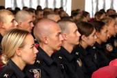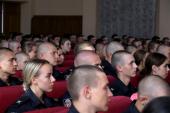 У заході взяли участь ректор вишу Дмитро Швець, перший проректор Сергій Бортник, проректор Анатолій Клочко, декани факультетів Анатолій Колотік та В’ячеслав Марков. Ректор університету наголосив, що головним завданням курсантів є навчання, оволодіння професійними знаннями, необхідними для служби в Національній поліції. Наполегливість, відповідальність, старанність, дотримання дисципліни та правил внутрішнього розпорядку є визначальними для кожного курсанта. В університеті працює потужний науково-педагогічний колектив, створені належні умови для навчання, занять спортом, творчістю – є все, щоб досягти поставленої мети і стати професіоналом своєї справи. Як зазначив Дмитро Швець, колектив закладу освіти постійно працює над удосконаленням навчальних програм, орієнтованих на максимальне поєднання теорії з практикою. Протягом навчання курсанти проходять практику у підрозділах поліції, набувають професійних навичок, досвіду. Починаючи з минулого року, згідно з рішенням Міністерства внутрішніх справ України, курсанти факультету № 3 після закінчення другого курсу переводяться на заочну форму навчання й приступають до несення служби в підрозділах патрульної поліції, що дає можливість отримання практичного досвіду та застосування знань в реальних умовах. Підкреслив ректор і унікальність факультету № 4, де готують кіберполіцейських. Жоден виш системи МВС України не має такого факультету, а курсанти після його закінчення є одними з найзатребуваніших фахівців в Національній поліції. Тож, звертаючись до молоді, ректор закликав наполегливо оволодівати знаннями, працювати над собою, щоб реалізуватися у житті та професійній діяльності.