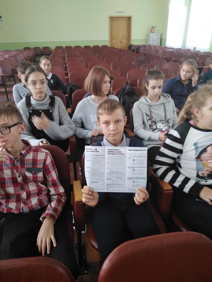 Під час заходу учнів ознайомили з найбільш поширеними проявами булінгу та шляхами їх подолання. Школярі із зацікавленістю прослухали інформацію, ставили запитання та брали активну участь в обговоренні.