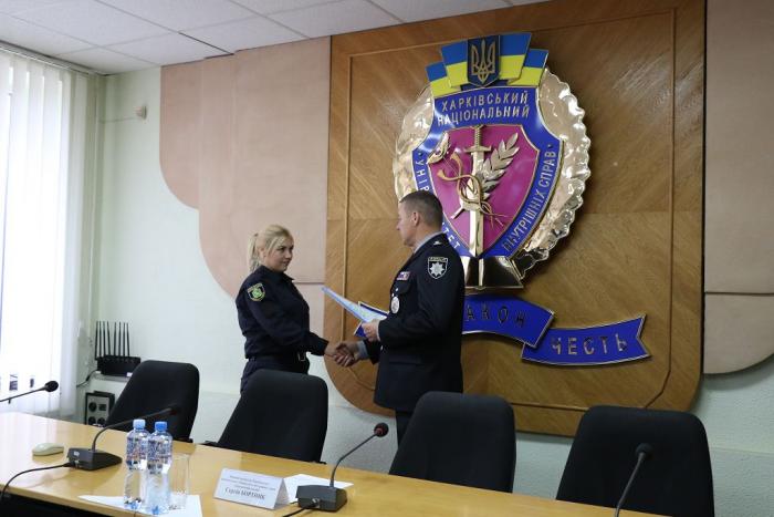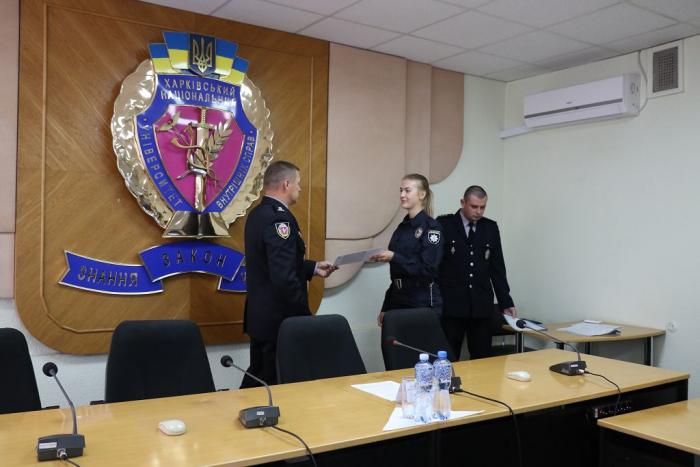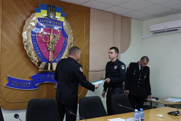 У Харківському національному університеті внутрішніх справ відбувся випуск слухачів курсів первинної професійної підготовки поліцейських. 27 випускників, з яких п’ятеро є працівниками ГУ НП в Чернігівській області та 22 – працівниками ГУ НП в Харківській області, після завершення навчання здобули професію «Поліцейський». Перший проректор університету підполковник поліції Сергій Бортник привітав випускників та вручив їм документи про успішне завершення навчання.