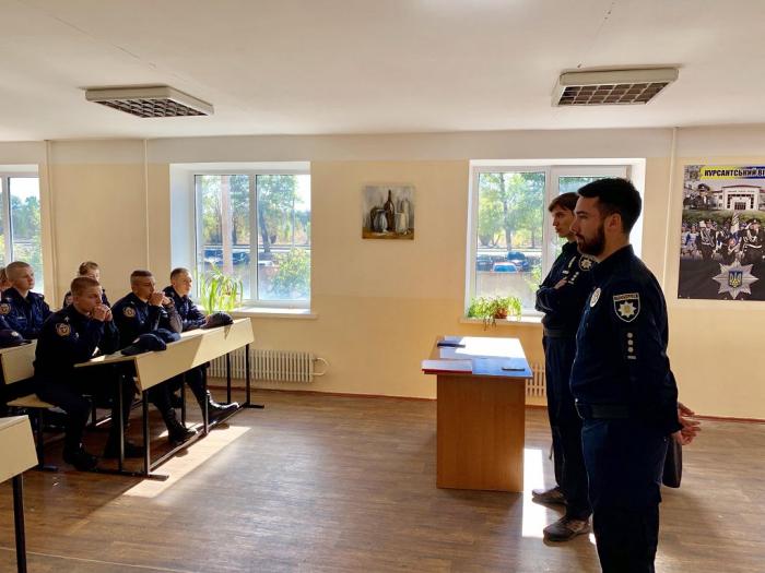 Старшим викладачем кафедри конституційного і міжнародного права Євгенією Логвиненко проведено зустріч курсантів навчальної групи Ф4-103 факультету № 4 з інспекторами відділу зв’язків з громадськістю Управління патрульної поліції в Харківській області Департаменту патрульної поліції Денисом Чайковським та Микитою Синєгібським. Поліцейські розповіли про особливості своєї служби, про адміністративні правопорушення, які найчастіше вчиняються сучасною молоддю, а також відповіли на численні запитання курсантів стосовно служби в патрульній поліції.