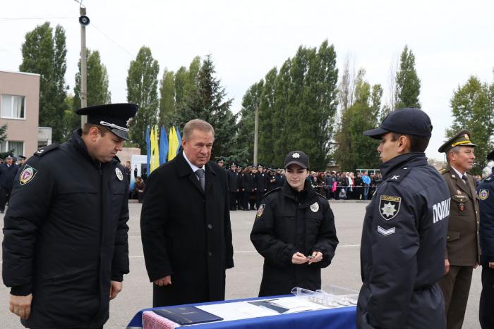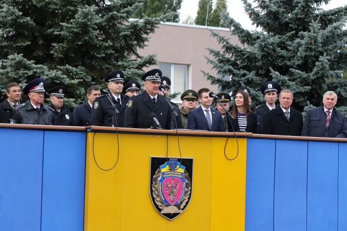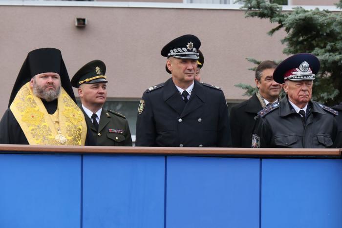 Начальник ГУНП в Харківській області Валерій Сокуренко зазначив, що донедавна він очолював університет, і все, що відбувається на плацу, викликає особливі почуття. У своєму виступі Валерій Васильович наголосив на важливості соціальної та матеріальної захищеності поліцейського, підкресливши, що «нам є чим захищати і є кого захищати», побажав першокурсникам гідно нести службу й пам’ятати слова Присяги усе життя.