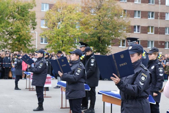 600 майбутніх слідчих, фахівців підрозділів превентивної діяльності, боротьби з кіберзлочинністю та кримінального блоку Національної поліції України поклялися вірно служити Українському народу та отримали жетони поліцейських. Щоб вступити до відомчого закладу вищої освіти юнаки та дівчата доклали багато зусиль – наполегливо вивчали профільні предмети, тренувалися, адже майбутній поліцейський повинен мати не лише якісні знання, але й бути фізично витривалим, уміти дати відсіч злочинцю та захистити громадян.