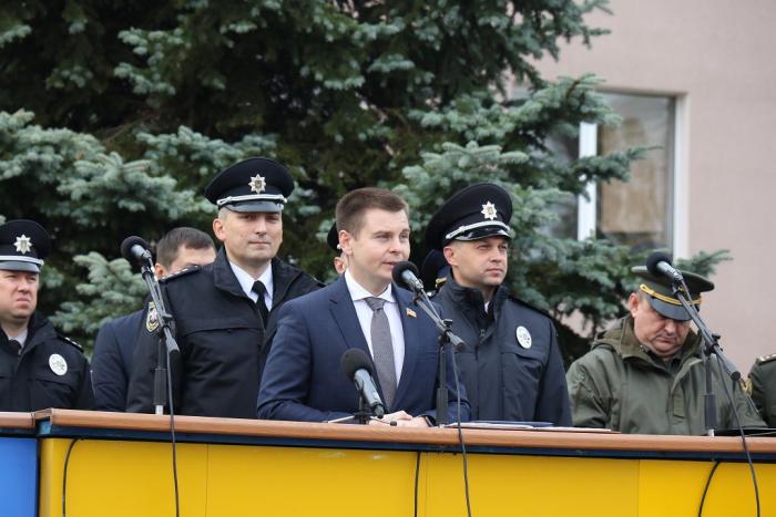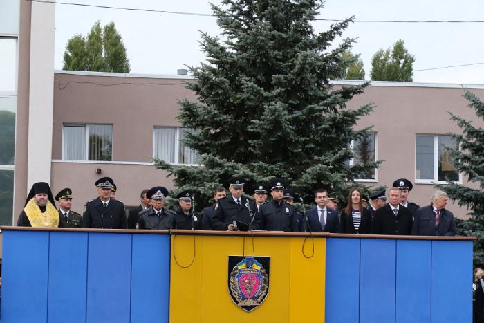 Від імені Колегії МВС України та себе особисто першокурсників привітав заступник Директора Департаменту персоналу, організації освітньої та наукової діяльності – начальник управління професійної освіти та науки МВС України Антон Сизоненко: «Сьогодні урочисте зобов’язання на вірність Українському народові долучило вас до великої родини поліцейських та поєднало з усіма поколіннями захисників України. Суспільство очікує від Національної поліції забезпечення охорони прав і свобод, створення умов безпечного існування кожної людини. Це висока довіра та велика відповідальність!».
