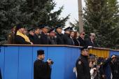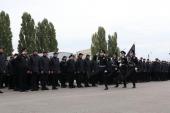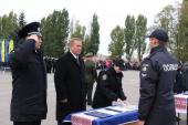 На вірну службу та захист нашої держави благословив курсантів Єпископ Харківський і Богодухівський, керуючий Харківською єпархією Православної церкви України Владика Митрофан, окропивши святою водою.