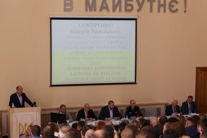 Під час пленарного засідання у своїх доповідях учасники заходу розглядали різні аспекти запобігання та протидії корупції. Начальник ГУНП в Харківській області Валерій Сокуренко, зокрема, наголосив на необхідності введення електронного обігу документів за прикладом європейських країн, що значно зменшить можливості корупційних проявів.