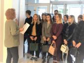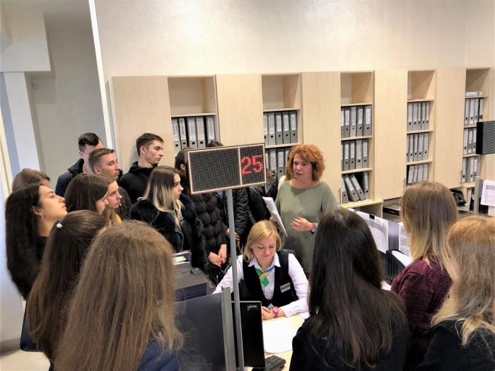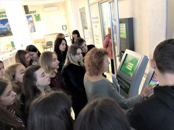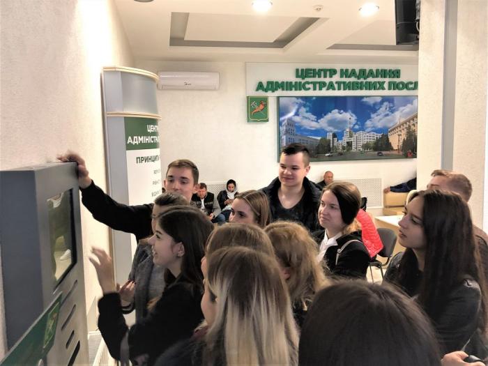 Заступник директора департаменту – начальник управління адміністративних послуг Ірина Юрьєва зустріла студентів, ознайомила їх з історією створення Центру надання адміністративних послуг, його перевагами. Особливу увагу заступник директора звернула на умови та порядок проходження електронної черги та попереднього запису до електронної черги, повним переліком послуг, ставками та порядком оплати адміністративного збору. Студентам детально роз'яснили посадові обов'язки та весь функціонал діяльності адміністратора-консультанта, який привітно зустрічає клієнтів та надає консультації, інформацію про адміністративні послуги та порядок їх отримання, надали перелік документів для отримання адміністративних послуг.