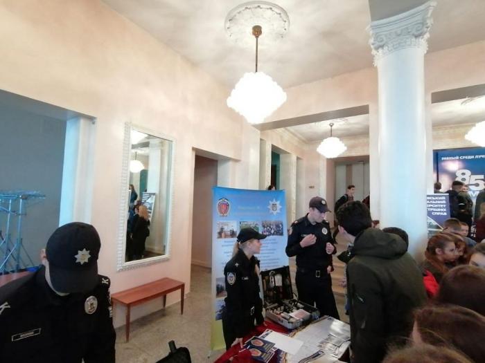 У фойє Міського палацу культури представники університету розмістили стенди навчальних підрозділів вишу, спілкувалися з жителями міста, розповідали про заклад освіти, відповідали на численні запитання та запрошували юнаків і дівчат на навчання. Працівники та курсанти університету знайомили молодь зі спеціальностями, за якими готують фахівців для всіх підрозділів Національної поліції. Для того, щоб стати курсантом чи студентом університету необхідно не лише добре вчитися, займатися спортом, але й бути різносторонньою особистістю, патріотом своєї держави. Для цього в університеті створена чудова матеріальна база, численні наукові, спортивні гуртки, гуртки художньої самодіяльності, які дозволяють кожній молодій людині отримати чудову освіту та реалізувати себе у житті. На площі перед Палацом культури виступив курсантський підрозділ барабанщиць університету.