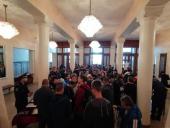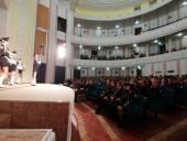 Поспілкуватися з керівництвом університету, представниками ГУНП в Донецькій області та переглянути концерт, який підготували учасники художньої самодіяльності вишу, у глядацькому залі палацу зібралося більше тисячі мешканців Краматорська.