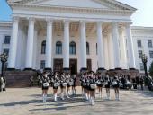 Для мешканців Краматорська колективи художньої самодіяльності університету та ансамбль барабанщиць підготували творчі подарунки. Мешканці міста зустрічали представників художніх колективів вишу гучними оплесками та підтримували їх.