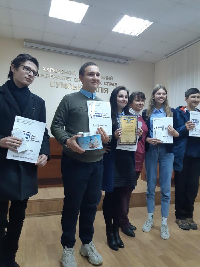 На базі Сумської філії Харківського національного університету внутрішніх справ пройшов ІV відкритий міський турнір юних правознавців серед учнів 9–11-х класів загальноосвітніх навчальних закладів міста Суми. Це змагання команд учнів, які вміють викласти та обґрунтувати свою позицію з приводу тієї чи іншої правової проблеми та довести її в наукових дискусіях – правових раундах. Цього року учасниками змагань стали 15 команд учнів загальноосвітніх навчальних закладів міста.