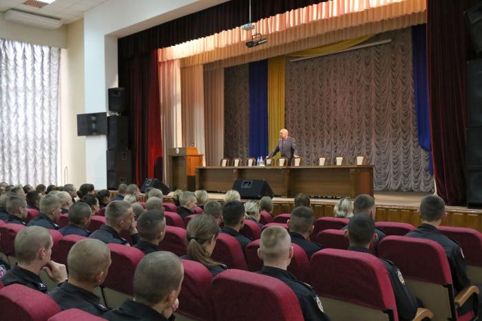 Перший ректор Харківського національного університету внутрішніх справ, академік Національної академії правових наук України, доктор юридичних наук, професор, Заслужений юрист України Олександр Бандурка провів лекцію для курсантів, присвячену 25-річчю створення університету. Олександр Маркович розповів про основні етапи становлення вишу, який першим в Україні почав готувати кадри для правоохоронної системи нашої держави, про те, як формувалися структура університету, з’являлися нові підрозділи, зростав і набував досвіду науково-педагогічний колектив, формувалися наукові школи та багато іншого. Відзначив Олександр Маркович і випускників, якими університет пишається, і які щороку збираються у стінах рідної Альма Матер, щоб поринути у спогади найщасливіших років навчання, згадати своїх вчителів та наставників, поділитися своїми успіхами та досягненнями. Багато випускників університету обіймають керівні посади, відомі в державі люди, і це – найвища нагорода для колективу вишу, визнання високого статусу закладу освіти, який постійно рухається уперед, активно впроваджує новації, пам’ятає і шанує свою історію задля нових звершень і перемог.