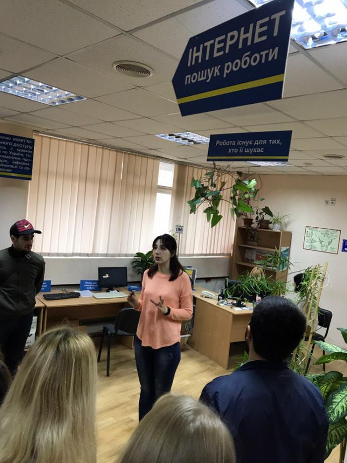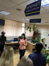 Державна служба зайнятості вирішує завдання, пов’язані з комплексним вирішенням питань щодо регулювання зайнятості населення, професійною орієнтацією, працевлаштуванням, соціальною підтримкою тимчасово непрацюючих громадян. Студенти ознайомилися з повним переліком послуг, який надає Харківський міський центр зайнятості.