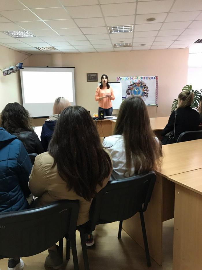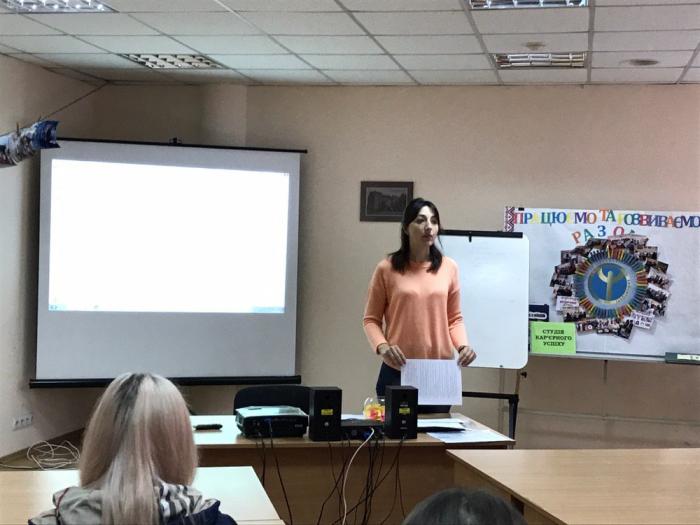 У студії кар'єрного зросту було проведено невеличкий тренінг щодо особливостей презентації себе як гідного працівника на ту чи іншу посаду, а також психологічний тренінг. Отримані знання знадобляться молоді у подальшій практичній діяльності.