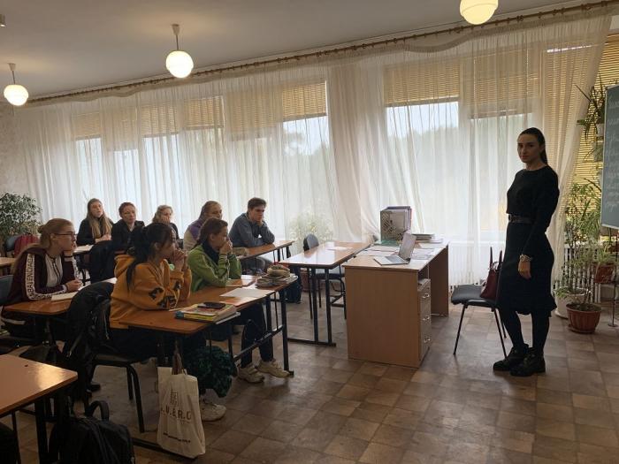 Старший викладач кафедри кримінального права та кримінології факультету № 6 Карина Салаєва провела профорієнтаційну зустріч з учнями випускного класу Безлюдівського юридичного ліцею імені І.Я. Підкопая Харківської районної ради Харківської області.