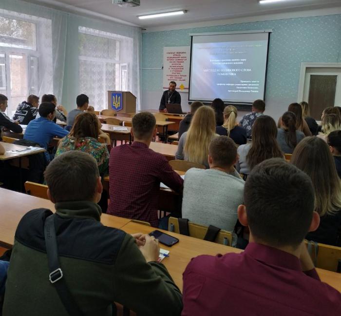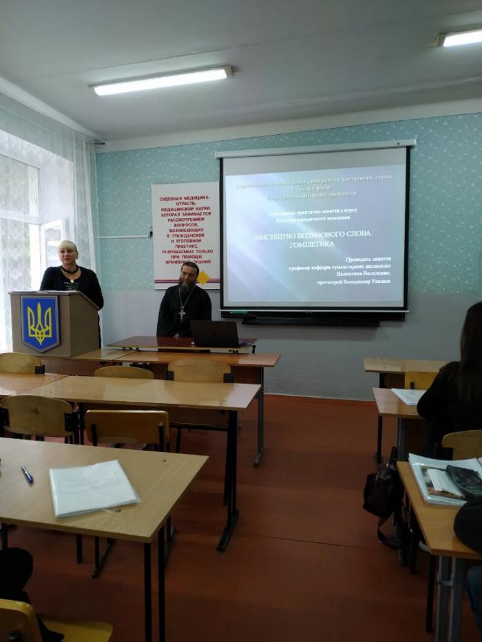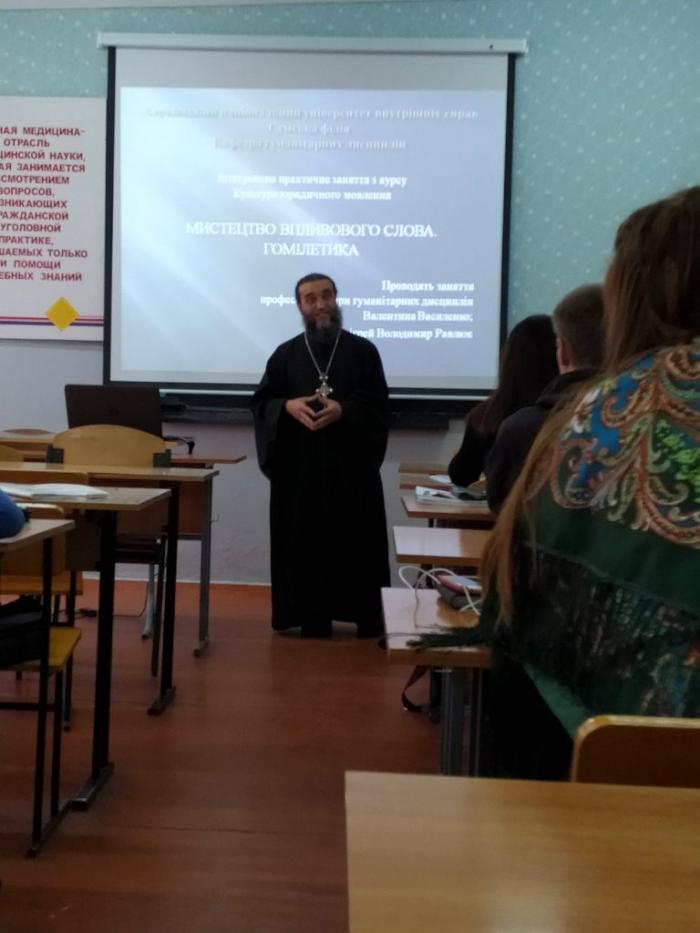 У Сумській філії Харківського національного університету внутрішніх справ у рамках освітнього процесу було проведено майстер-клас з українського красномовства (риторики) та гомілетики професором кафедри гуманітарних дисциплін Валентиною Василенко та протоієрем Володимиром Равлюком.