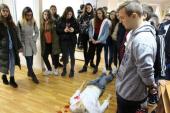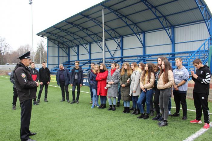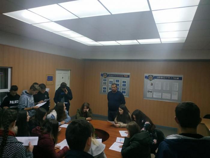Під час зустрічі з майбутніми вступниками перший проректор університету підполковник поліції Сергій Бортник розповів про історію та досягнення закладу вищої освіти, його структуру, особливості підготовки до вступу, умови навчання, про побут та дозвілля курсантів і студентів. Він поспілкувався зі школярами на тему їх майбутньої професійної орієнтованості, наголосив на актуальності професії поліцейського, розповів про переваги навчання у Харківському національному університеті внутрішніх справ.