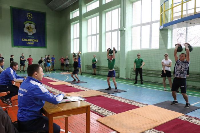 У змаганнях взяли участь збірні команди курсантів і студентів факультетів університету, у складі кожної команди виступали сім чоловіків і три жінки у різних вагових категоріях. Вага гир у чоловіків – 24 кг, у жінок – 8 кг та 16 кг.