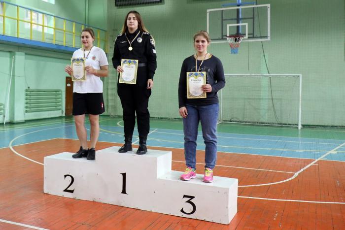 1 місце - посіла курсант 3-го курсу факультету №-1 Росторгуєва Наталя із результатом 80 р;