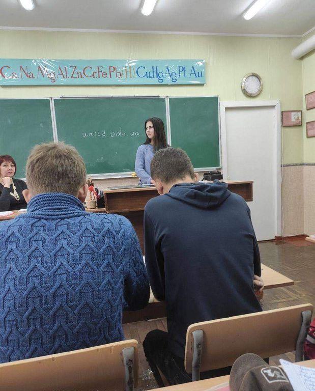 Учням випускних класів розповіли про університет, про особливості умов вступу та переваги навчання, про можливості та перспективи працевлаштування та професійного росту тощо. Хлопці та дівчата із зацікавленістю прослухали інформацію та отримали рекламні матеріали, де міститься корисна інформація про заклад вищої освіти.