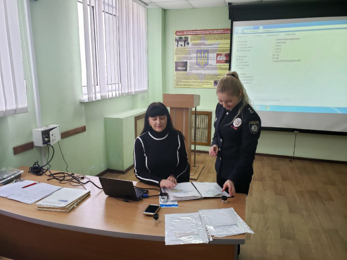 Яна Ткаченко має більш, ніж 20-річний стаж експертної діяльності з техніко-криміналістичного дослідження документів, тому, під час заняття, вона на практичних прикладах ознайомила слухачів з сучасними можливостями експертного дослідження документів, ознаками способів їх друку та елементами захисту, продемонструвавши відповідну презентацію «Види національних посвідчень водія та свідоцтва про реєстрацію транспортних засобів та елементи їх захисту». Під керівництвом Тетяни Матюшкової слухачі мали можливість з використанням технічних засобів, що дозволяють неозброєним оком визначити ознаки підробок документів, оглянути зразки справжніх та підроблених водійських посвідчень, свідоцтв про реєстрацію транспортних засобів, інших документів.