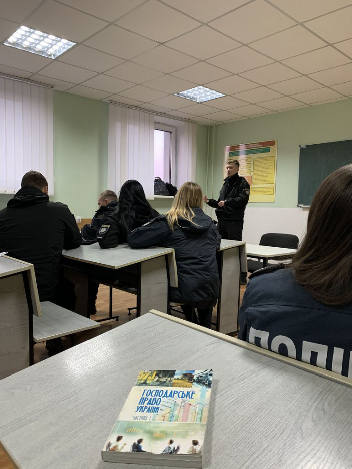 Доцентом кафедри трудового та господарського права факультету № 2 Харківського національного університету внутрішніх справ кандидатом юридичних наук, старшим науковим співробітником, підполковником поліції Валентиною Гончарук для курсантів четвертого курсу факультету № 1 (навчальна група Ф1-402) проведено бінарне заняття з навчальної дисципліни «Господарське право» за темою: «Особливості взаємодії слідчих підрозділів та патрульної поліції в службовій діяльності». У занятті взяли участь поліцейський взводу № 1 роти № 1 батальйону Управління патрульної поліції у Донецькій області Департаменту патрульної поліції, капрал поліції Крістіна Глибова; поліцейський сектору реагування патрульної поліції № 4 Добропільського відділу поліції Головного управління Національної поліції в Донецькій області капрал поліції Ганна Артюхова; поліцейський взводу № 2 роти № 1 батальйону Управління патрульної поліції в Луганській області Департаменту патрульної поліції, рядовий поліції Владислав Бєлашов; поліцейський батальйону Управління патрульної поліції в м. Кременчук, рядовий поліції Єгор Старостенко; поліцейський роти № 1 батальйону № 1 Управління патрульної поліції в Полтавській області Департаменту патрульної поліції, рядовий поліції Віталій Полтавець.