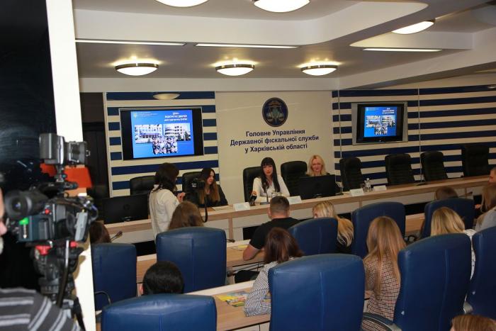 Начальник управління комунікацій ГУ ДПС у Харківській області Оксана Вікторова розповіла про основні засади та напрями діяльності податкової служби, ознайомила з роботою канцелярії.