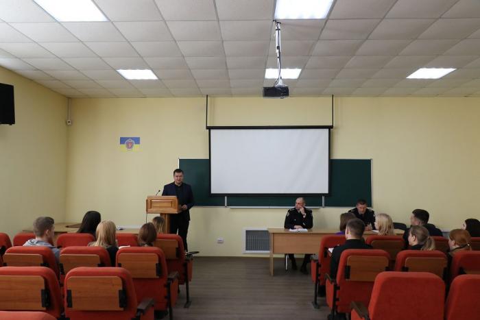 Дмитро Володимирович ознайомив молодь з університетом, розповів про цілі та плани на майбутнє. Ректор наголосив, що Харківський національний університет внутрішніх справ не зупиняється у своєму русі, постійно вдосконалює навчальну та матеріально-технічну базу, оновлює освітні програми, займається науковою роботою. Курсантська та студентська молодь не стоїть осторонь цих процесів. Юнаки і дівчата старанно опановують професію, беруть участь у конкурсах, олімпіадах, стають переможцями й отримують нагороди, торують власний шлях у науку, займаються спортом і творчістю. Ректор зазначив, що керівництво університету робить усе для того, щоб молодь мала належні умови і в навчанні, і в побуті. Дмитро Володимирович підкреслив, що він особисто і керівний склад вишу відкриті для спілкування. Усі питання, що виникають у життєдіяльності закладу освіти, не залишаються поза увагою й вирішуються колегіально. Дмитро Володимирович закликав молодь бути більш активними, виявляти ініціативу та брати на себе відповідальність, а також більше спілкуватися між собою. Хоча структурні підрозділи університету територіально віддалені один від одного, проте завдяки можливостям сучасної техніки, налагоджено відеозв`язок, що дозволяє спілкуватися в онлайн-режимі, брати участь у конференціях, семінарах, інших заходах, обговорювати нагальні питання життєдіяльності. На актуальні питання курсанти та студенти Сум і Кременчуга отримали відповіді під час зустрічі.