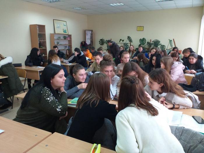 У межах Тижня української писемності та мови старшими викладачами кафедри соціально-гуманітарних дисциплін факультету № 6 кандидатом філологічних наук Наталією Кобилко та кандидатом педагогічних наук Галиною Мариківською для студентів університету (групи Ф-6-ПСдср-19-1 і Ф-6-ПДдср-19-4) було проведено виховний захід з української мови.