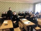 Інспектор ювенальної превенції поділилася з курсантами досвідом практичної роботи, звернувши увагу на профілактичну діяльність, направлену на попередження вчинення неповнолітніми адміністративних правопорушень, зокрема булінгу. Також обговорювалися питання взаємодії підрозділів ювенальної превенції з іншими уповноваженими органами та підрозділами Національної поліції, органами державної влади та місцевого самоврядування.