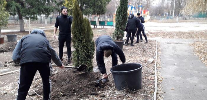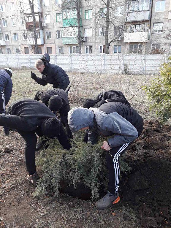 Курсанти привезли та висадили на території дитячих закладів саджанці дерев та кущів.