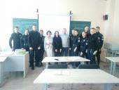 Поліцейський-кінолог розповіла про різні методики дресури собак та способи вироблення рефлексів для розшуку людини або речей. Заняття відбулося у формі дискусії, курсанти переглянули відео про специфіку діяльності кінологів, виявлення прихованої зброї, вибухівки або наркотиків.