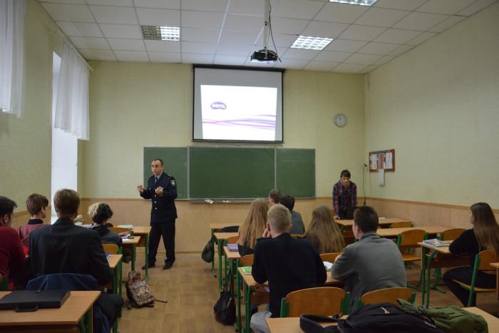 Представники вишу розповідали старшокласникам про професію поліцейського, про її важливість і необхідність для суспільства, запрошували учнів вступати до Сумської філії ХНУВС та стати фахівцем за обраною спеціальністю.