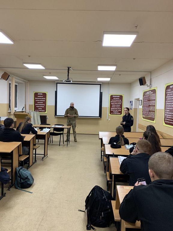 Заняття відбулося у формі діалогу. Наприкінці заняття практичні працівники відповіли на численні запитання курсантів та наголосили на дотриманні заходів особистої безпеки поліцейського.