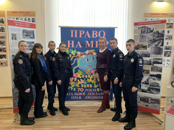 У рамках Всеукраїнського тижня права представники факультету № 1 – професор кафедри теорії та історії держави і права Юлія Загуменна разом з курсантами – провели інтерактивні уроки, приурочені проголошенню Загальної декларації прав людини та спрямовані на підвищення обізнаності учнів щодо міжнародних стандартів прав людини та механізмів їх реалізації та захисту. У заходах взяли участь учні 8–11 класів Харківської спеціалізованої школи № 119 Харківської міської ради.