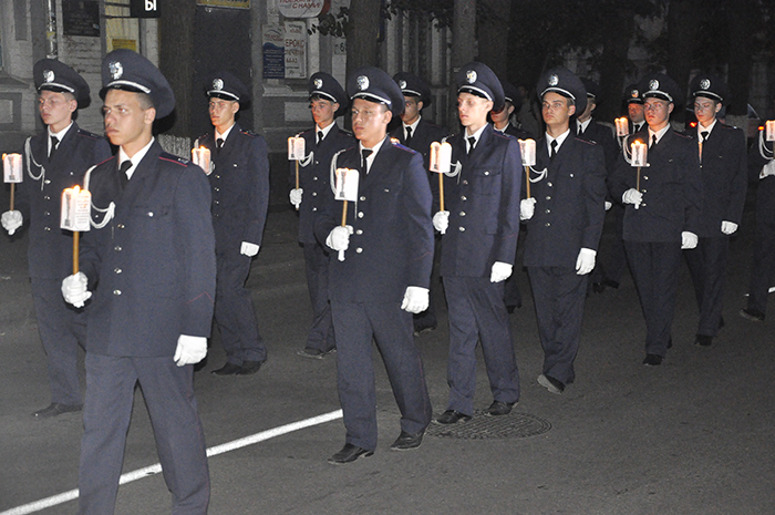 На початку церемонії у каплиці Архистратига Михаїла відбулася панахида. Починаючи з післявоєнних років до теперішнього часу на Харківщині загинули 62 правоохоронці. На їх честь було організовано факельну ходу. Від будівлі Головного управління МВС Харківської області до Меморіального комплексу урочистим кроком пройшли вихованці Ліцею міліції, які тримали у руках символічні факели.