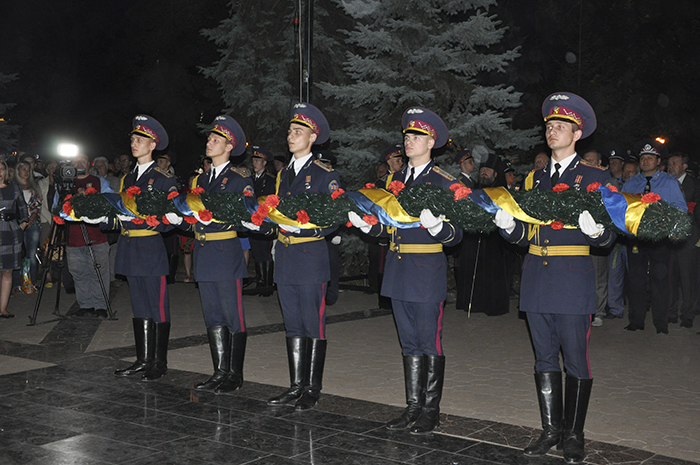 До пам’ятника, біля якого було розміщено портрети загиблих та поминальні свічки, було покладено гірлянду Пам’яті, а юні актори міліцейського театру виконали мініатюру-реквієм. Наприкінці театралізованого виступу у небо злетіли голуби, як символ безсмертя душ загиблих міліціонерів.