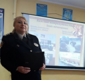 Наприкінці зустрічі полковник поліції Ірина Казанчук також розповіла школярам про умови вступу до Харківського національного університету внутрішніх справ, про факультети та спеціальності, за якими готують фахівців у виші, правила подання документів на навчання у ХНУВС.
