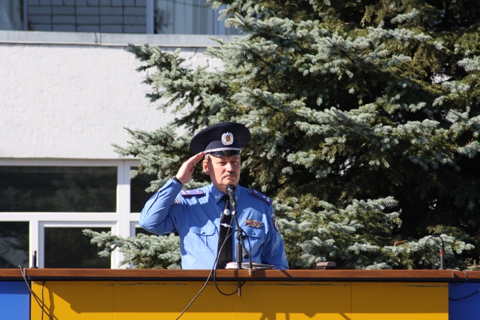 Урочисті заходи відкрив проректор Харківського національного університету внутрішніх справ, полковник міліції Василь Кікінчук. Він привітав присутніх зі святом, відмітивши особливу значимість державного символу України в наш час.