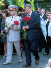 На Меморіалі Слави в Лісопарку до пам'ятника Скорботної Матері та братських могил поклали квіти ветерани Другої світової війни, представники влади, народні депутати України, громадськість, духовенство, харків'яни.