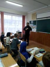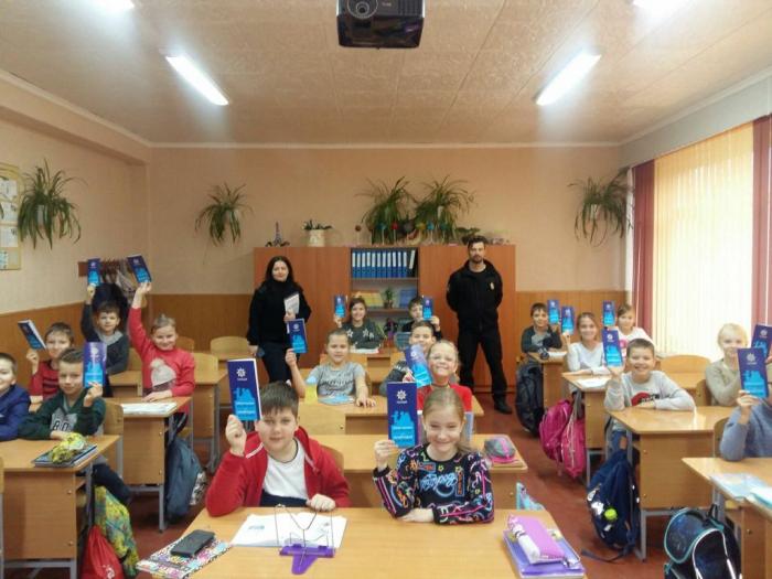 Доцент кафедри Валентина Яценко та старший інспектор з особливих доручень відділу ювенальної превенції УПД ГУНП в Харківській області Олег Мотрич провели спільну бесіду з учнями молодших класів ХЗОШ № 25, під час якої було роз’яснено права дитини та способи їх забезпечення в Україні. Увагу дітей звернули на їх особисту безпеку поза межами домівки та школи. Поліцейські пояснили дітям як їм слід діяти в різних ситуаціях та за якими ознаками можна розпізнати справжнього поліцейського. Малеча потримала в руках жетони та посвідчення поліцейських, а також отримала відповіді на запитання, що їх турбували.