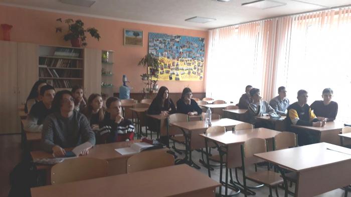 Школярі також переглянули іміджевий відеоролик про Харківський національний університет внутрішніх справ. Учнів старших класів їх батьків та друзів викладач запросила на День відкритих дверей, що відбудеться в Харківському національному університеті внутрішніх справ 19 грудня 2019 року.