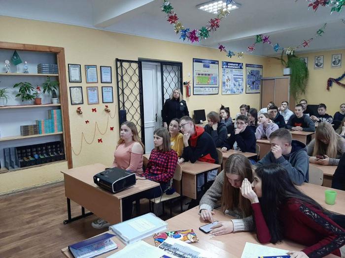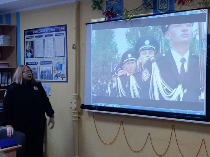 У рамках проведення профорієнтаційної роботи школярі переглянули відеофільм про Харківській національний університет внутрішніх справ. Ірина Казанчук поінформувала присутніх про факультети, умови вступу та правила подання документів на навчання за спеціальностями: «Право», «Правоохоронна діяльність», «Психологія» та «Кібербезпека», за якими готують фахівців у виші. Окрему увагу було приділено перевагам навчання на факультеті № 1, що здійснює підготовку фахівців для органів досудового розслідування (на посадах слідчого та інспектора-криміналіста), окреслено можливості подальшого працевлаштування курсантів ХНУВС.