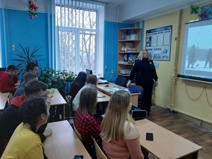 Доцентом кафедри адміністративного права та процесу факультету № 1 полковником поліції Іриною Казанчук проведено інформаційно-роз’яснювальну бесіду на правові теми з учнями 10-11 класів Харківської загальноосвітньої школи І-ІІІ ступенів № 101 Харківської міської ради Харківської області. Під час бесіди Ірина Казанчук розповіла учням про підстави та особливості кримінальної та адміністративної відповідальності неповнолітніх, нагадала дітям про негативний вплив наркотичних засобів на організм людини, та наслідки, до яких може призвести вживання наркотичних засобів, розповіла про конкретні неприємні ситуації, в які може потрапити дитина через власну необережність, і як їх уникнути.