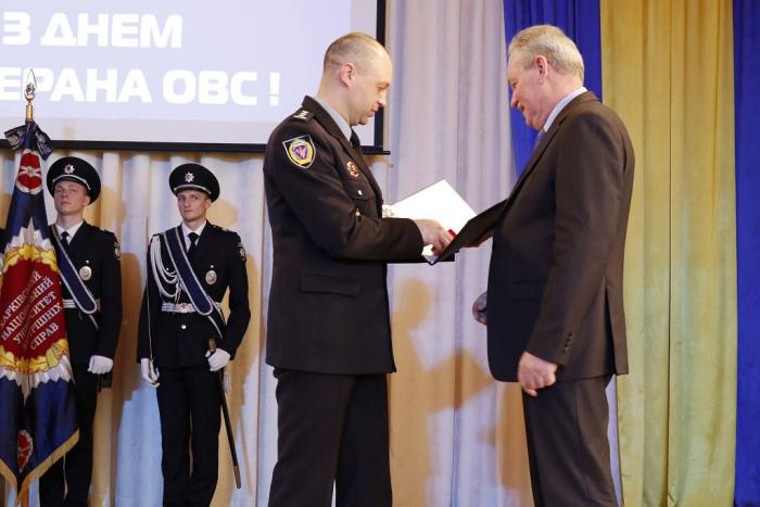 Привітав ветеранів ректор університету Дмитро Швець: «Сьогодні ми вшановуємо всіх тих, хто присвятив своє життя захисту прав і свобод громадян. Дякуємо вам за роки відданої служби, професіоналізм. Ми високо цінуємо ваш внесок у формування нового покоління правоохоронців. Ви вчите молодь прагнути змінювати на краще долю своєї держави. Велике вам за це спасибі». Також ректор вручив нагороди ветеранам. Почесною грамотою Харківської обласної державної адміністрації за активну громадську діяльність, вагомий особистий внесок у справу боротьби зі злочинністю нагороджено Кікінчука Василя Юрійовича, професора кафедри поліцейської діяльності та публічного адміністрування факультету № 3 ХНУВС.